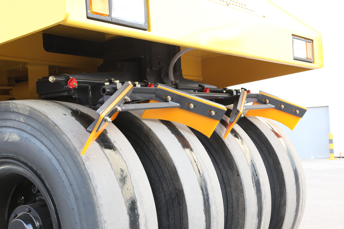 يُوفر نظام الإطارات الفريد، المكون من 4 إطارات أمامية و5 إطارات خلفية، تغطية كاملة، بالإضافة إلى خاصية "العجن" المعروفة للأسطوانات الهوائية. تعمل هذه الخاصية على إحكام إغلاق السطح، وزيادة الكثافة، ومنع تمزق المواد أثناء عملية دك الأسفلت.